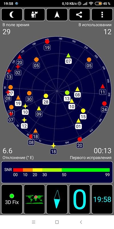 Навигационный модуль работает с GPS (с A-GPS), а также и с Глонасс, и с китайской Beidou. Первые спутники при холодном старте обнаруживаются быстро, в течение первой минуты. Магнитный компас, необходимый для работы навигационных программ, в аппарате имеется.