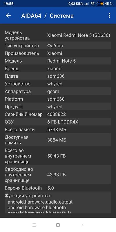 Кроме того, смартфон также располагает 6 ГБ оперативной памяти и 64 на накопителе, что тоже очень хорошо сказывается на его производительности. Имеется возможность расширения памяти за счет установки карт microSD есть, но устанавливать приложения на карту памяти система не предлагает. Правда, тесты показали, что аккамулятор в 4000 мАч не делает Redmi Note 5 долгожителем и ждать от него больше полутора-двух дней без подзарядки не стоит.