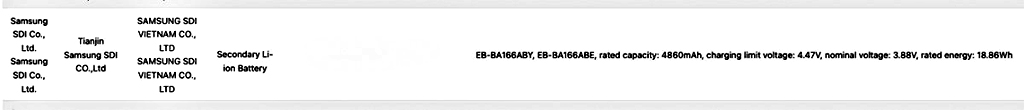 Новостной ресурс GSMArena отмечает, что две версии Galaxy A16 5G с двумя разными SoC свидетельствуют о том, что, скорее всего, они будут запущены на разных рынках. И, на данный момент, благодаря китайской сертификации этого устройства стало известно, какой будет ёмкость его аккумуляторной батареи. Из записей базы данных следует, что Galaxy A16 5G будет оснащён аккумулятором ёмкостью 5000mA·h (сертифицирован как номинальная ёмкость 4860mA·h, но будет рекламироваться на рынке как типичная ёмкость 5000mA·h).