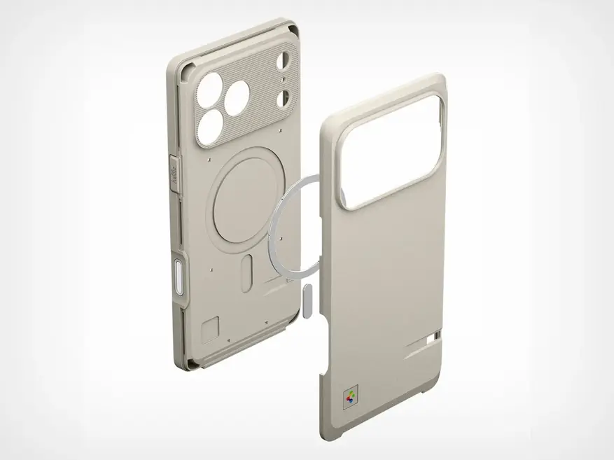 Чехол оснащён встроенной кнопкой управления камерой, совместимой с аппаратной клавишей Camera Control в iPhone 17 Pro. В конструкцию интегрировано магнитное кольцо стандарта MagSafe для беспроводной зарядки и крепления аксессуаров. На корпусе предусмотрено отверстие для крепления ремешка.