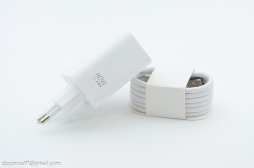 Для зарядки смартфона предусмотрено 80-ваттное зарядное устройство с USB-A разъемом. Подобная связка обеспечивает полный цикл заряда за 46 минут, а первые 50% и вовсе достигаются за 19 минут. Поддержка беспроводной зарядки отсутствует.