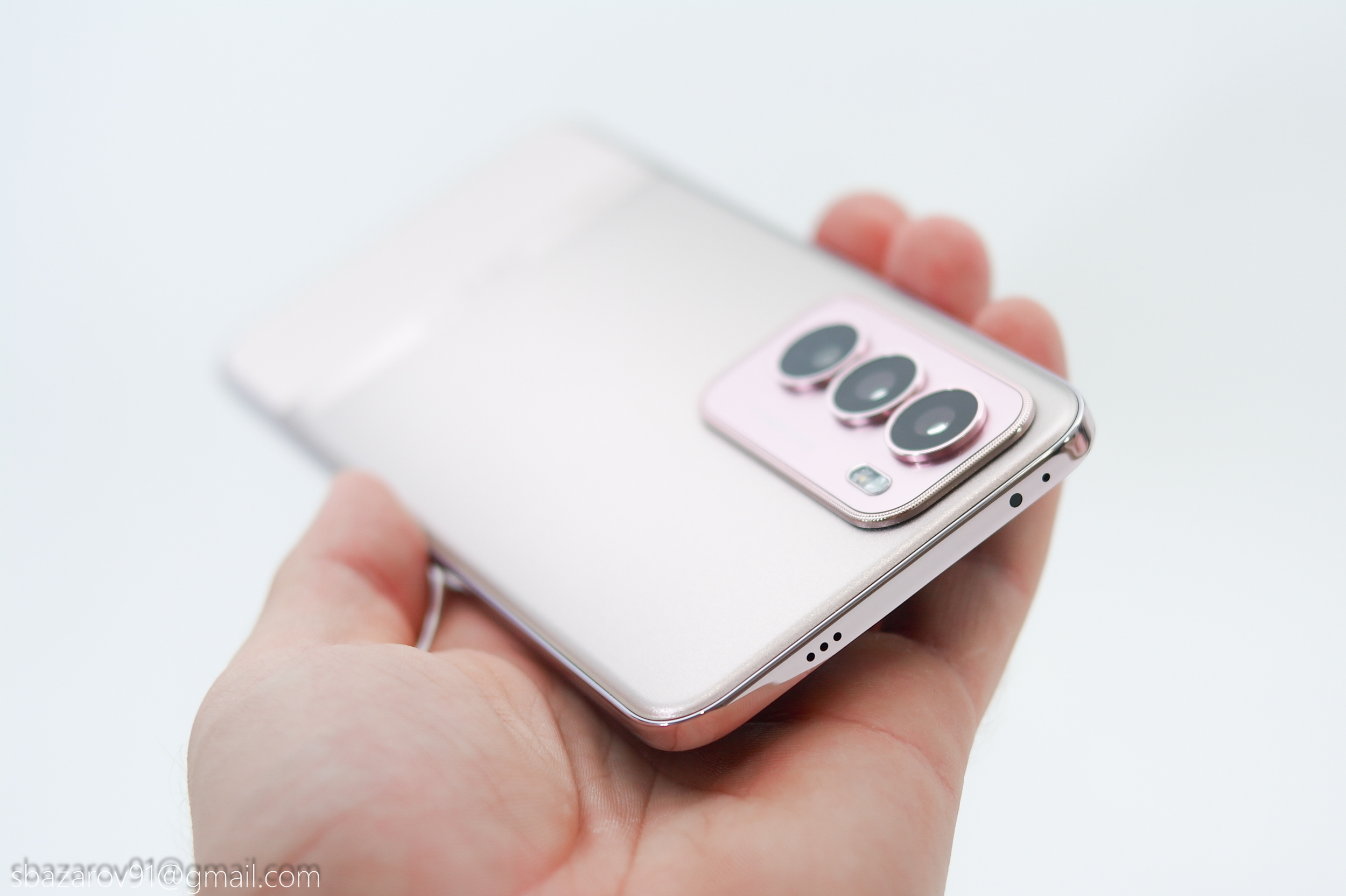 Несмотря на явное сходство рамки телефона с металлической, на самом деле она изготовлена из пластика. Корпус смартфона имеет слегка закругленные края как с передней, так и задней стороны, что делает его более удобным для удержания. В плане периферии OPPO Reno12 Pro практически не отличается от Reno12 F, за исключением дополнительного ИК-порта в верхней части, который предназначен для управления бытовой техникой. Во всем остальном они идентичны: оптический сканер под экраном, стереозвук, два микрофона и гибридный лоток для двух nanoSIM или одной SIM-карты и карты памяти, которая поддерживает объем до 2ТБ включительно.