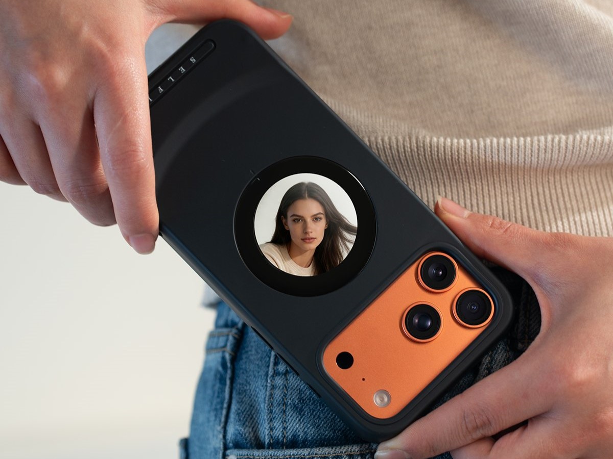 Стартап Dockcase, ранее занимавшийся выпуском портативных SSD-накопителей и USB-хабов, представил чехол для Айфона по имени Selfix. Портал GSMArena протестировал необычный аксессуар и рассказал о нём во всех подробностях. В первую очередь чехол выделяется встроенным 1,6″ OLED-дисплеем, с помощью которого можно снимать селфи на основную камеру. Необычная форма экрана объясняется тем, что он находится аккурат внутри магнитной площадки. Благодаря этому к смартфону можно прикреплять аксессуары с кольцевым креплением (например, штативы) и не перекрывать экран. Матрица поддерживает касания, а это значит, что вы можете управлять камерой прямо с заднего экрана. Разрешение панели — 480x480 пикселей.