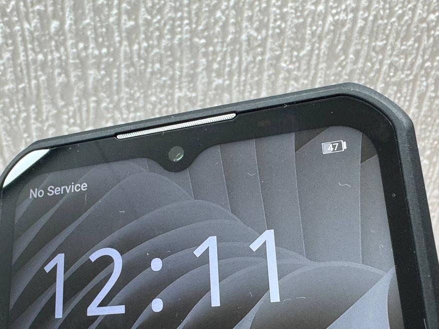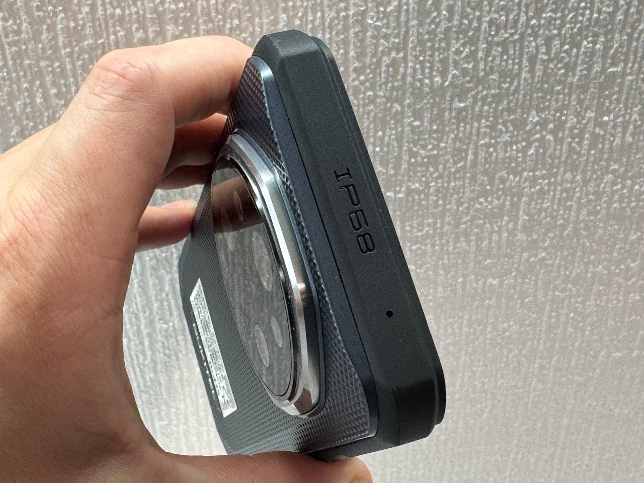 Корпус выполнен из прочного полимерного пластика, который пружинит при падении. В верхней части расположен микрофон шумоподавления и обозначение класса защиты IP68.