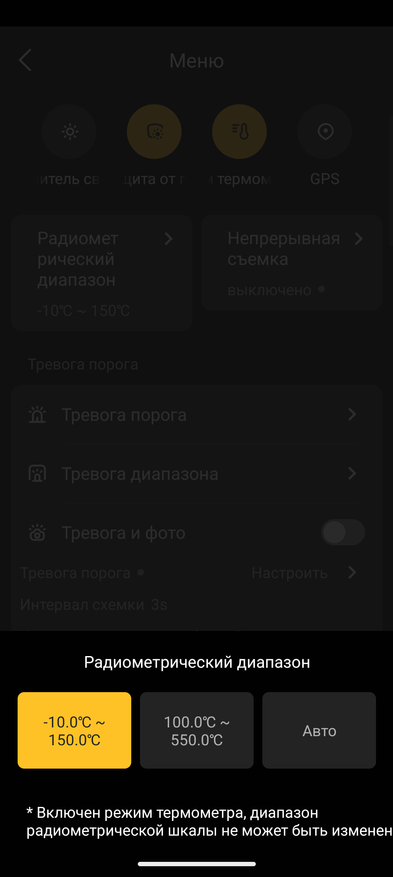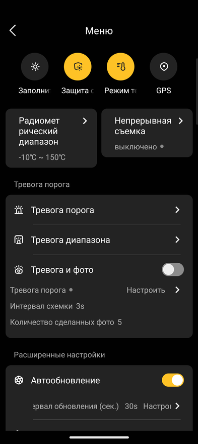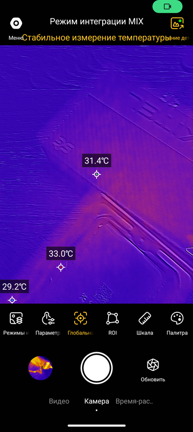 Отдельно стоит выделить тепловизор. Он запускается через фирменное приложение Thermal Cam. Возможна фото- и видеосъёмка, настройка нескольких диапазонов температур (Ниже нуля, от 0 до 150 градусов и от 150 градусов и выше), а также выбор режима измерения по точкам и разные тематические визуализации.