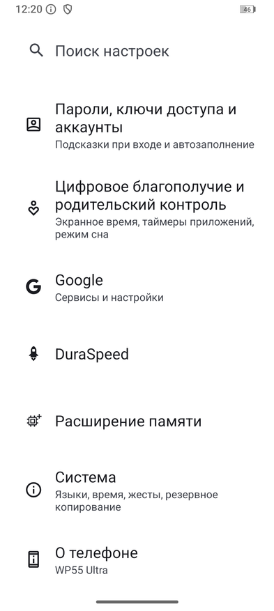 В настройках можно задать действия на программируемую кнопку, расширить оперативную память, изменить частоту обновления экрана, включить DuraSpeed для очистки кэша и ускорения системы, а также настроить отпечаток пальца.