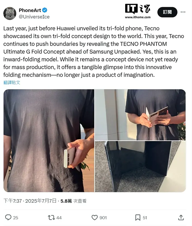 По информации от @UniverseIce, Phantom Ultimate G Fold в настоящее время находится на концептуальной стадии разработки. Сроки возможного массового производства и выхода на рынок пока не определены. Также отсутствуют данные о технических характеристиках устройства, включая спецификации экранов, процессора и камер.