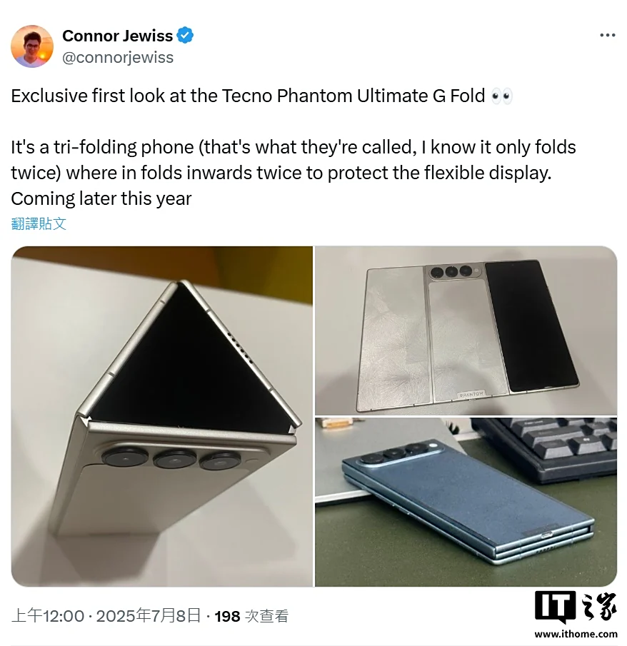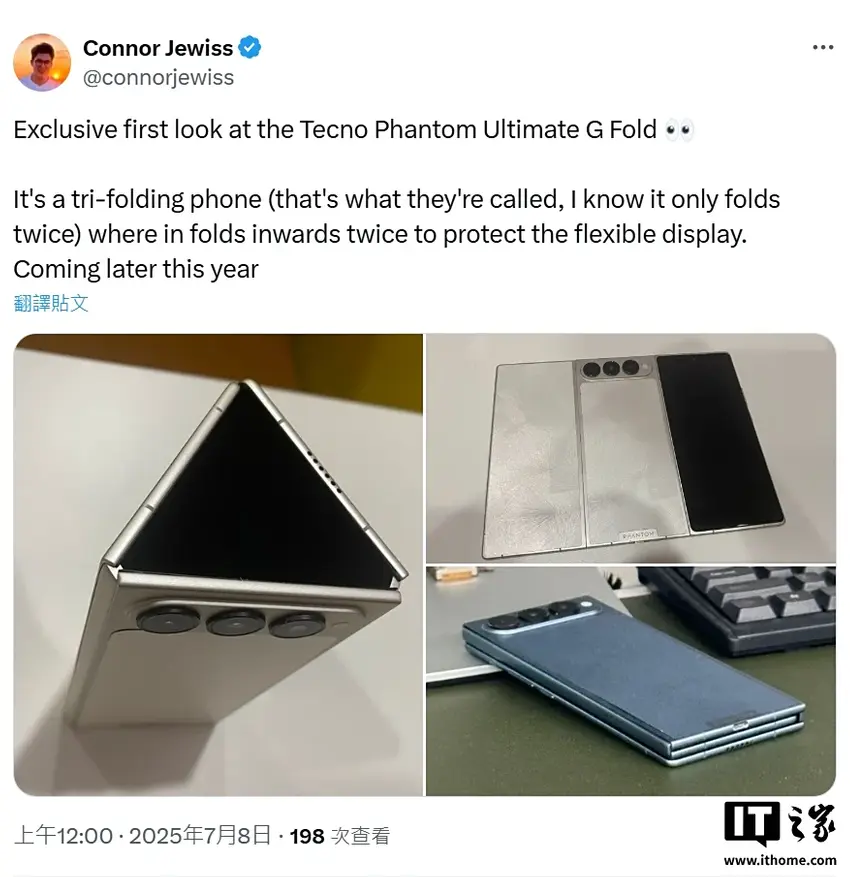 Китайская компания Transsion продемонстрировала прототип инновационного смартфона Phantom Ultimate G Fold с трехсекционным складным экраном. Информация о новинке появилась благодаря технологическим блогерам Коннору Джуиссу и @UniverseIce, которые опубликовали реальные фотографии устройства на платформе X.