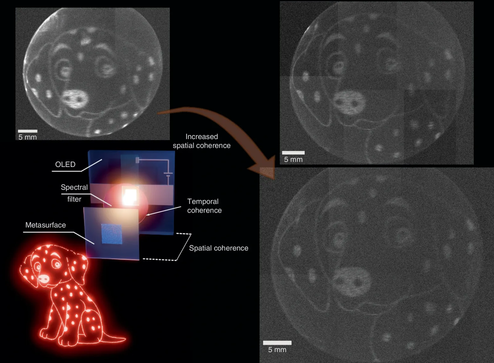 Ключевым достижением стала интеграция OLED-дисплеев с метаповерхностями, состоящими из наноструктур, называемых «метаатомами». Эти структуры модифицируют проходящий через них свет, создавая трехмерные изображения без применения лазеров. Метаповерхности функционируют как микроскопические оптические элементы, изменяющие фазу, интенсивность и поляризацию света для формирования интерференционных картин.