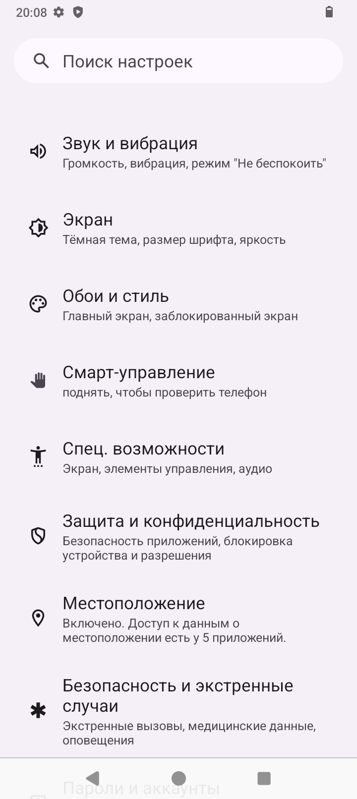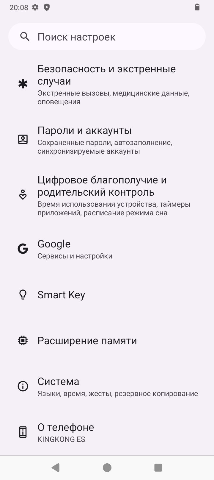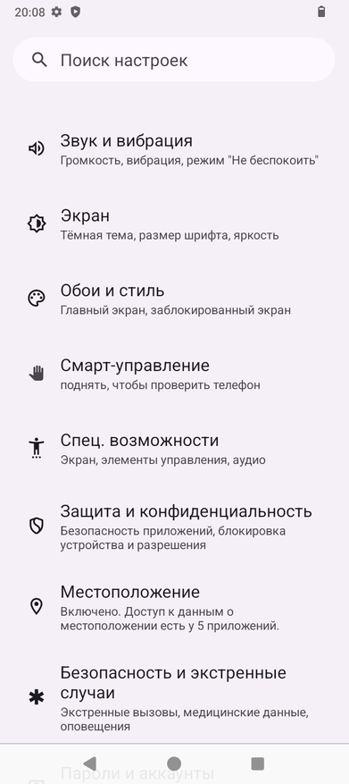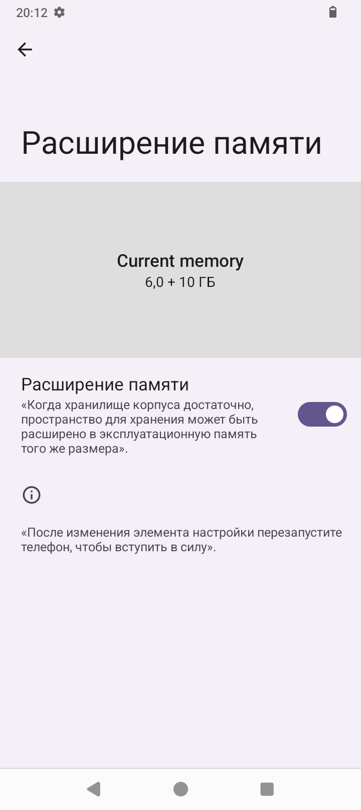 Аппарат базируется на операционной системе Android 14, его оболочка не имеет никакого лишнего софта, пункты меню локализованы процентов на 90. Управлять привычно при помощи быстрых инструментов в шторке, кнопок или жестов. Система занимает 9ГБ из 126ГБ ПЗУ. Оперативную память 6ГБ можно увеличить на 10ГБ при помощи опции расширения памяти из виртуальной области постоянной памяти.