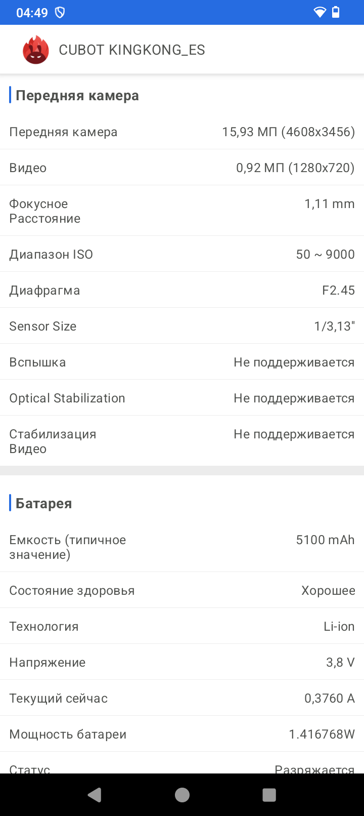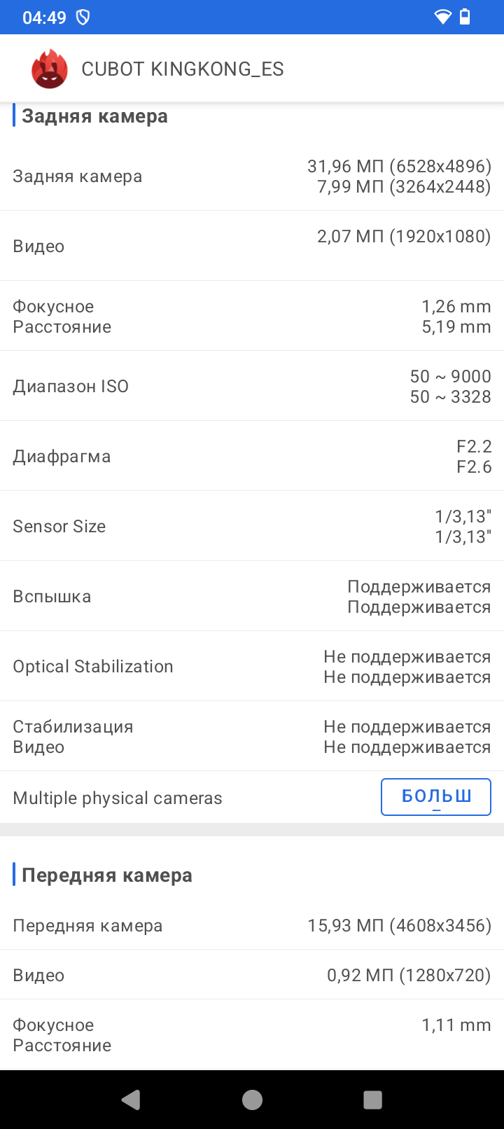 | Задняя камера | PDAF 48 МП + макрокамера 2 МП +вспышка 1A |