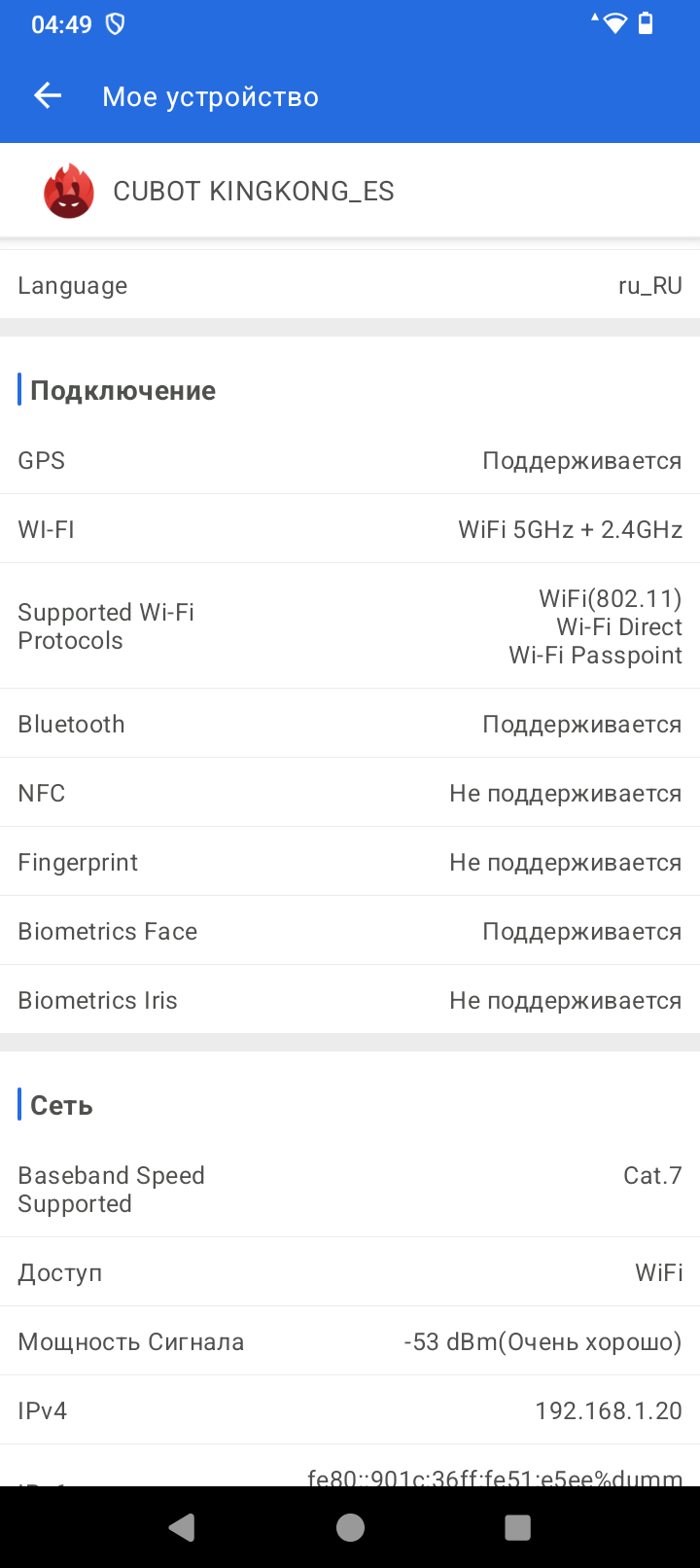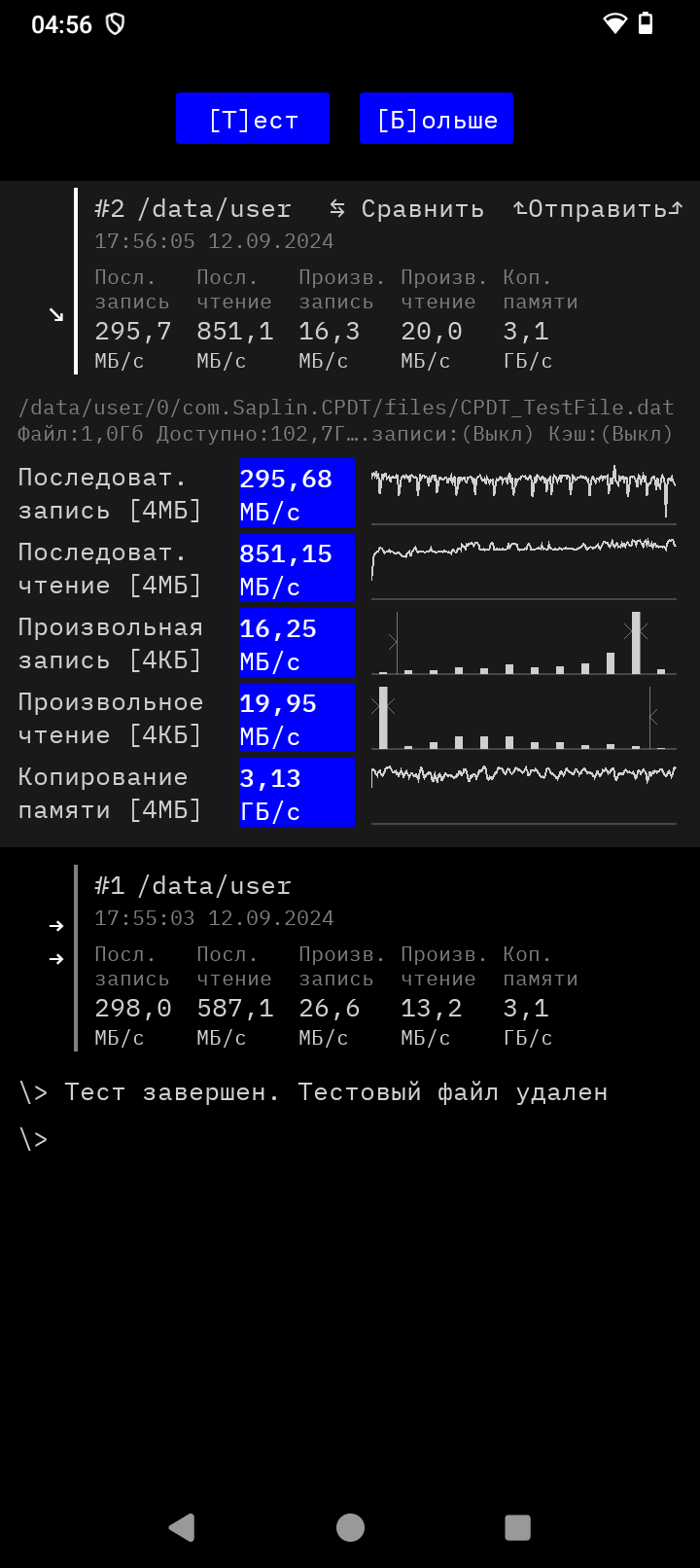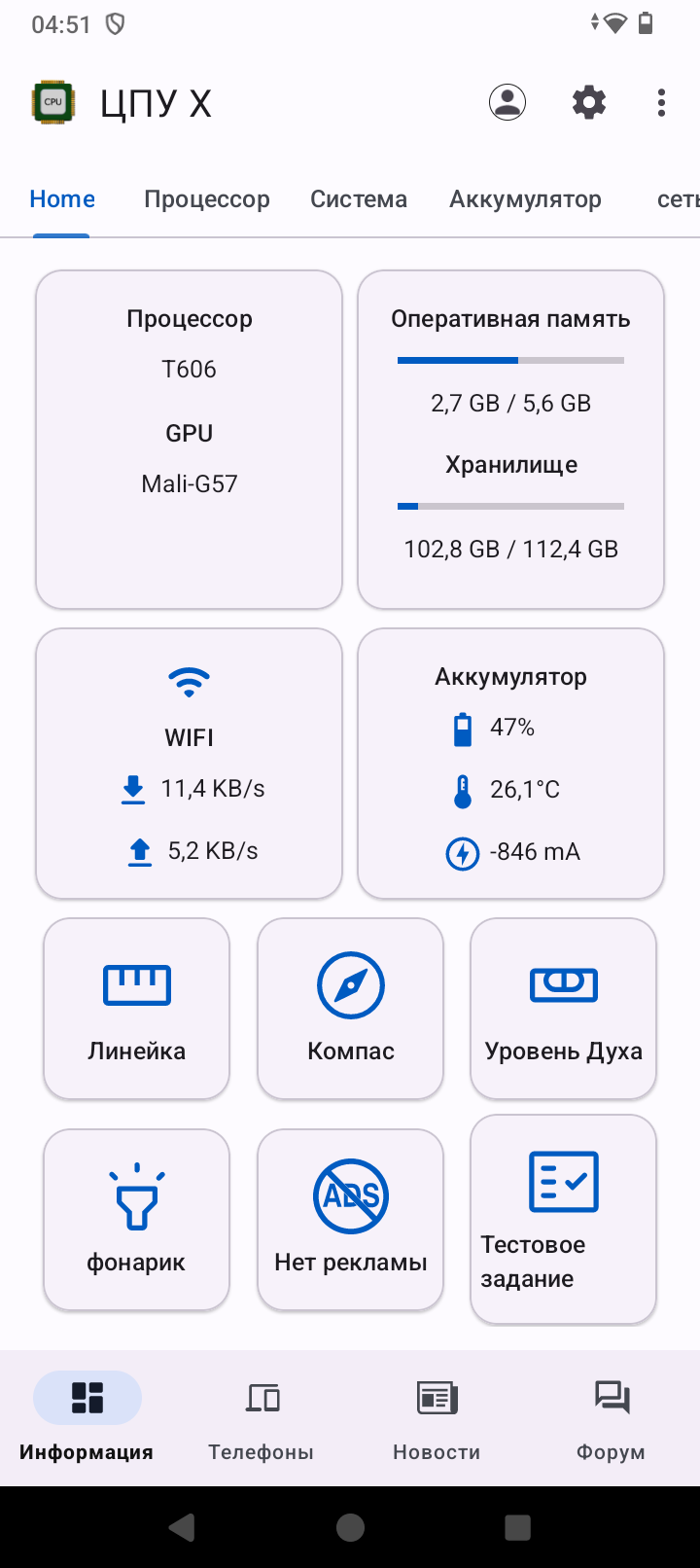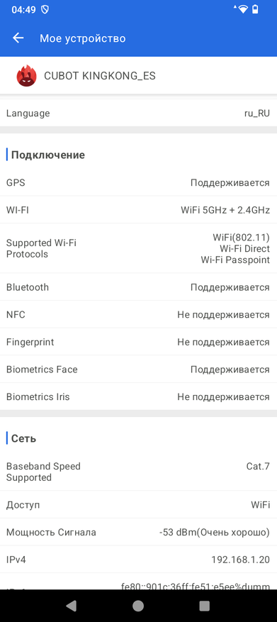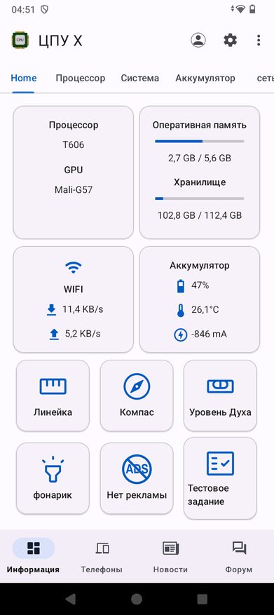 У него вполне неплохой уровень приема Wi-Fi, покрытие ловил везде в квартире. Работает в двух диапазонах, скорости интернета по Wi-Fi 5Ггц достигают 300Мб/с. Связь ловит уверенно, скорости моего 4G провайдера не превышают 20-25 Mб/с, но это связано с провайдером, а не со смартфоном. Дополнительно проверим скорости установленных чипов памяти. Любопытно, что на запись скорости бюджетные около 300МБ/с, а вот на обращение к памяти для чтения вполне себе неплохие 851 МБ/с. Не знаю, что за чип памяти использован, но производительность от такого чтения повыше, чем могла быть. Поэтому использование аппарата не вызывает боли от постоянных тормозов. Оболочка вращается шустро, функции, хоть и базовые, выполняются четко. Без долгих раздумий. Уровень приема спутников слабый, после холодного старта около минуты нашлось 22 спутника, которые показали уровень точности позиционирования около 7метров. Как верный навигатор, по всем развязкам и дворам я бы его использовать не стал, но выйти из леса он вполне поможет. Микрофон достойный, защитные мембраны не повлияли на качество того, как меня слышат собеседники, а динамик вполне громкий. Музыкальным его не назвать, но посмотреть видео можно вполне комфортно.