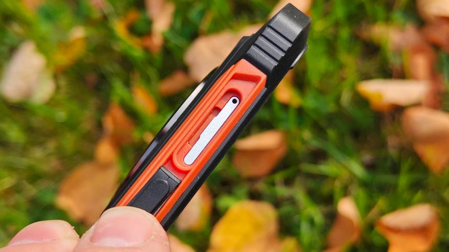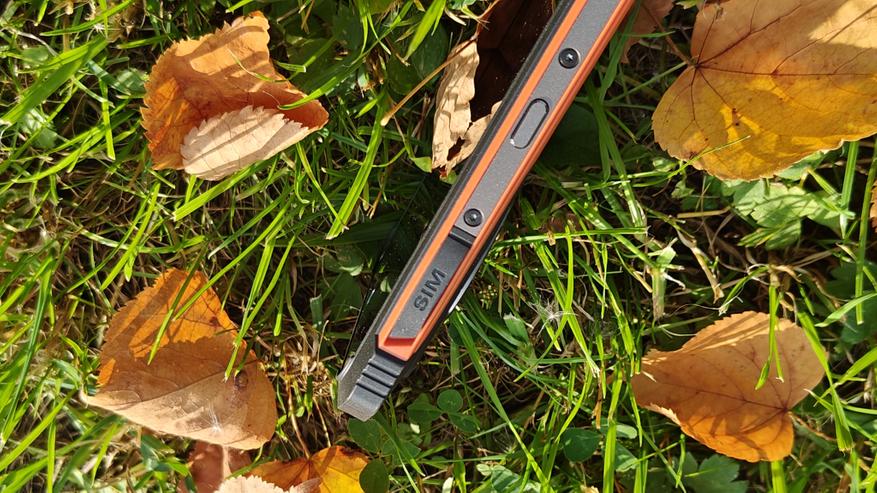Боковые стороны смартфона отличаются наличием стальных планок, служащих для надежности использования смартфона. На торце имеется кнопка дополнительных функций и лоток сим-карт. Лоток, соответствуя защищенному сертификату, закрыт резиновой заглушкой. Внутри классический лоток на две nano-SIM карты. Нужно будет выбирать использовать две SIM карты или одну SIM карту и карту памяти.