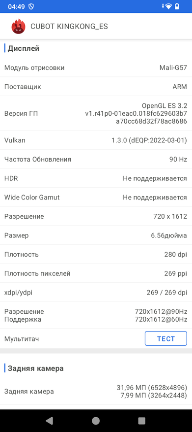 | Дисплей | 6,56 «HD IPS, 90 Гц, 1612x720 |
