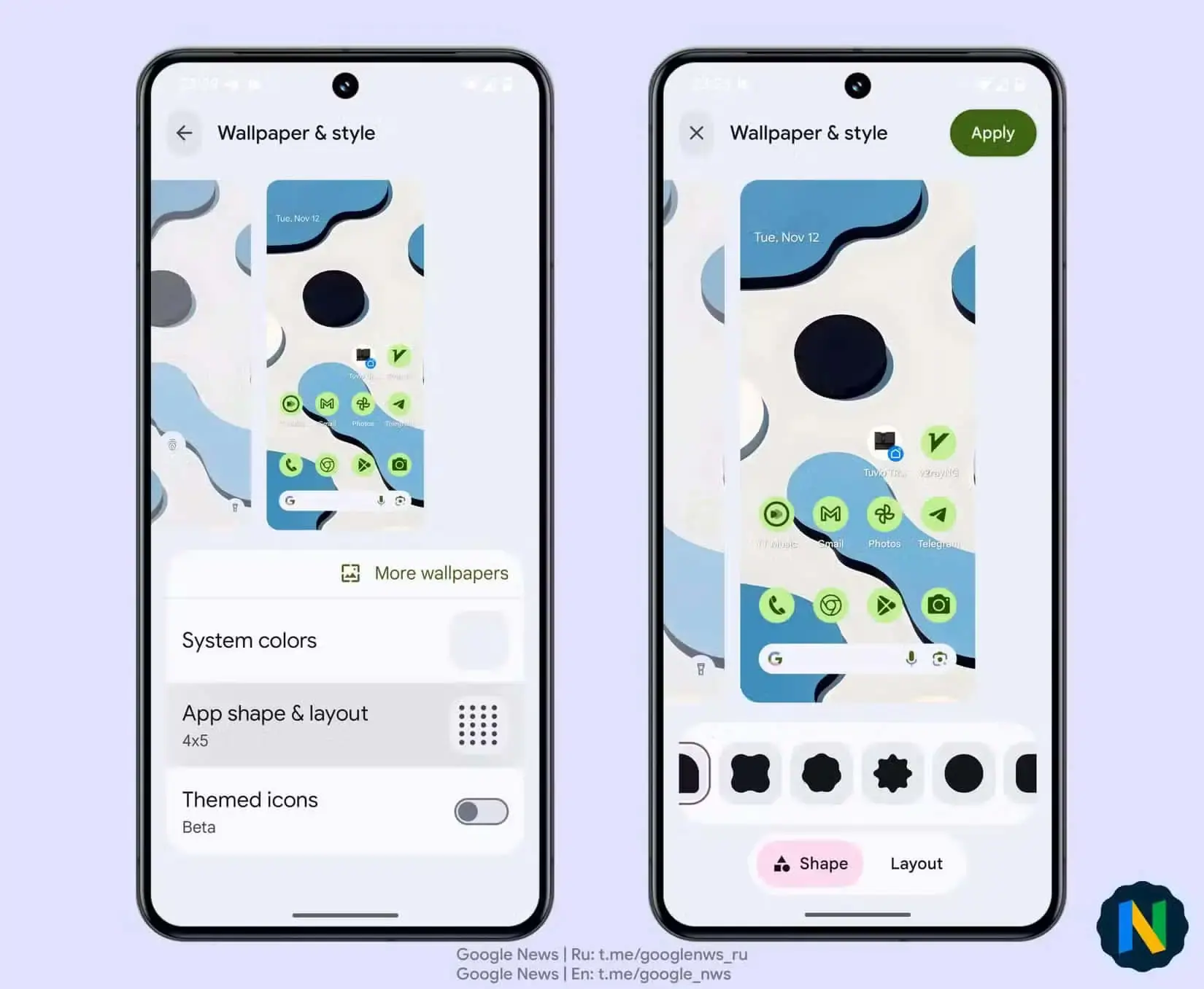 Недавно была представлена Android 16 QPR2 Beta 1 и согласно сообщениям из канала Google News, в ней обнаружена настройка меню «форма и макет приложения» в приложении обоев Pixel.
