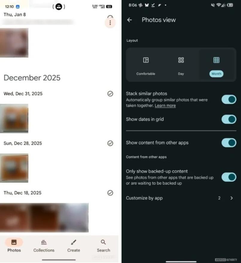 В Google Photos появится более целостный режим просмотра фотоматериалов. Новый режим позволит пользователям скрывать даты в разделе «Фото». Это позволит сформировать непрерывный список фотографий без разделения по датам, аналогично тому, как это реализовано в других галереях.