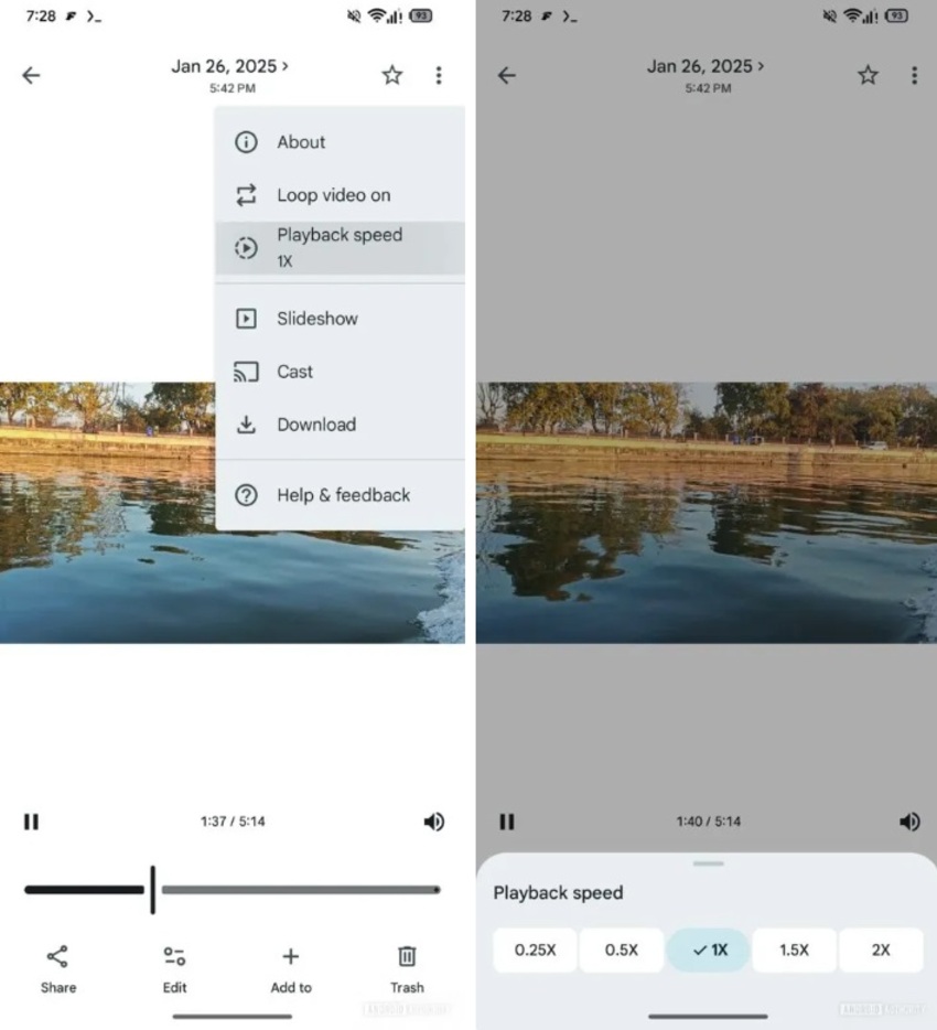 В скором времени при просмотре видеороликов в приложении Google Photos пользователи смогут нажать на значок с тремя точками в верхнем правом углу, выбрать опцию «Скорость воспроизведения». После этого появится окно с различными вариантами скорости: 0,25x, 0,5x, 1x, 1,5x и 2x.