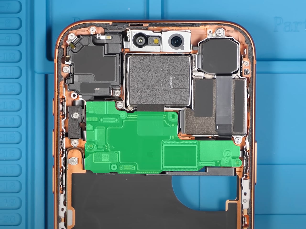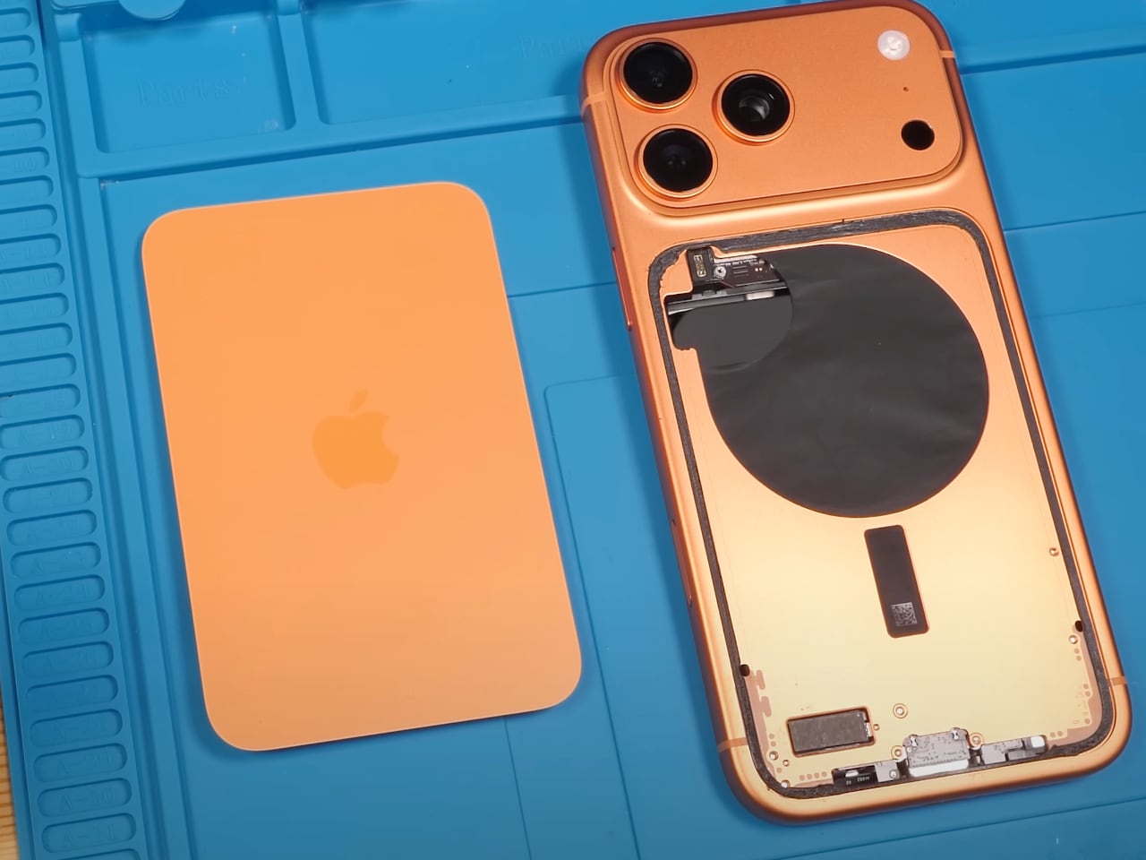 Внутренняя компоновка также претерпела значительные изменения. Логическая плата теперь занимает меньше места, чем камеры, что позволило разместить испарительную камеру. Процессор A19 Pro расположен рядом с 12 ГБ оперативной памяти и 512 ГБ накопителем для оптимального распределения тепла. Батарея емкостью 5112 мАч интегрирована с системой охлаждения.