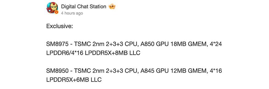 — Различия между модификациями чипа заключаются в графике. Один оснащён GPU Adreno 850 (18MB), а стандартный вариант использует упрощенный GPU Adreno 845 с 12MB GMEM (графической памяти), — сообщает DCS.