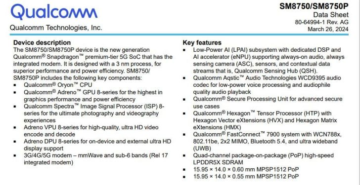 Сообщается, что Qualcomm планирует создать чипсет Snapdragon 8 Gen 4 с использованием новейшего 3-нм техпроцесса. Чипсет будет оснащен новейшим процессором Oryon от Qualcomm, который разработан для высокопроизводительных вычислений. Кроме того, он будет иметь графический процессор Adreno 8-й серии, предназначенный для обеспечения графических возможностей высочайшего уровня, идеально подходящих для игр и других ресурсоемких задач. Чипсет поддерживает двухканальную высокоскоростную LPDDR5X SDRAM по принципу «пакет в пакет» (PoP), что ещё больше повышает его производительность.