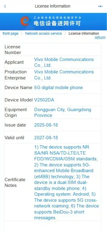 Согласно сертификационным документам, оба устройства будут работать на процессоре MediaTek Dimensity 9500, став одними из первых смартфонов с этим чипсетом на рынке. Модель X300 Pro (V2502DA) получит уникальную функцию спутниковой связи с поддержкой системы обмена текстовыми сообщениями Beidou-3, что позволит пользователям оставаться на связи даже в зонах без сотового покрытия.