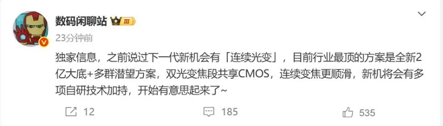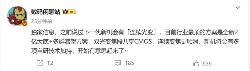 По информации Digital Chat Station, компания Xiaomi может стать первой, кто внедрит в смартфон 200-мегапиксельную камеру с многоуровневой перископической оптикой, поддерживающей непрерывный зум. Речь идёт не о привычных режимах 3x или 5x, а о полноценной работе объектива на всём диапазоне фокусных расстояний — как у настоящих камер.
