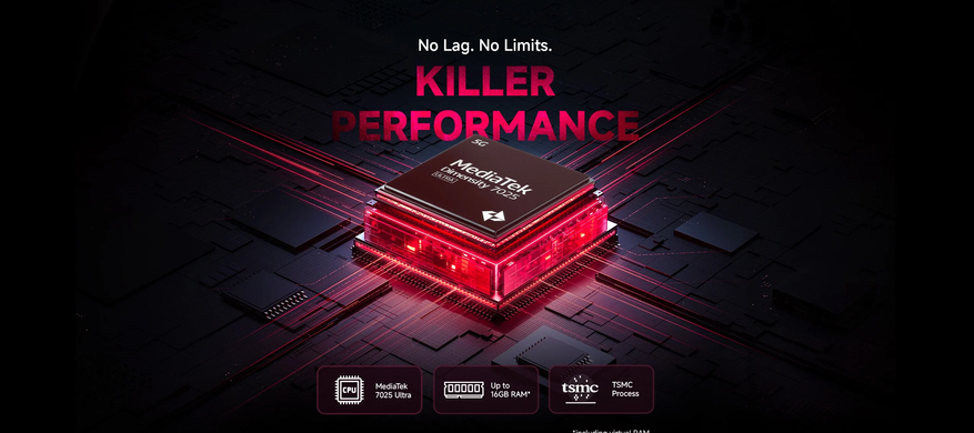 Аппаратная начинка осталась в среднем сегменте: используется чип MediaTek Dimensity 7025 Ultra с техпроцессом 6 нм. Предусмотрены версии с 8 ГБ оперативной памяти и до 128 ГБ встроенного хранилища.