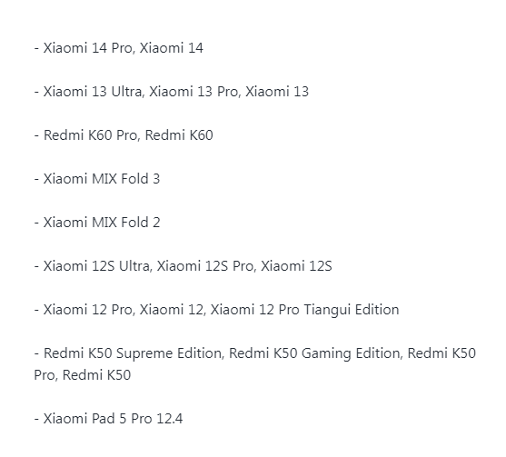 Последнее обновление HyperOS состоит из ряда улучшений и исправлений ошибок, направленных на обеспечение более плавной и стабильной работы. Ниже представлено фото со списком моделей телефонов, которым уже доступно новое обновление.