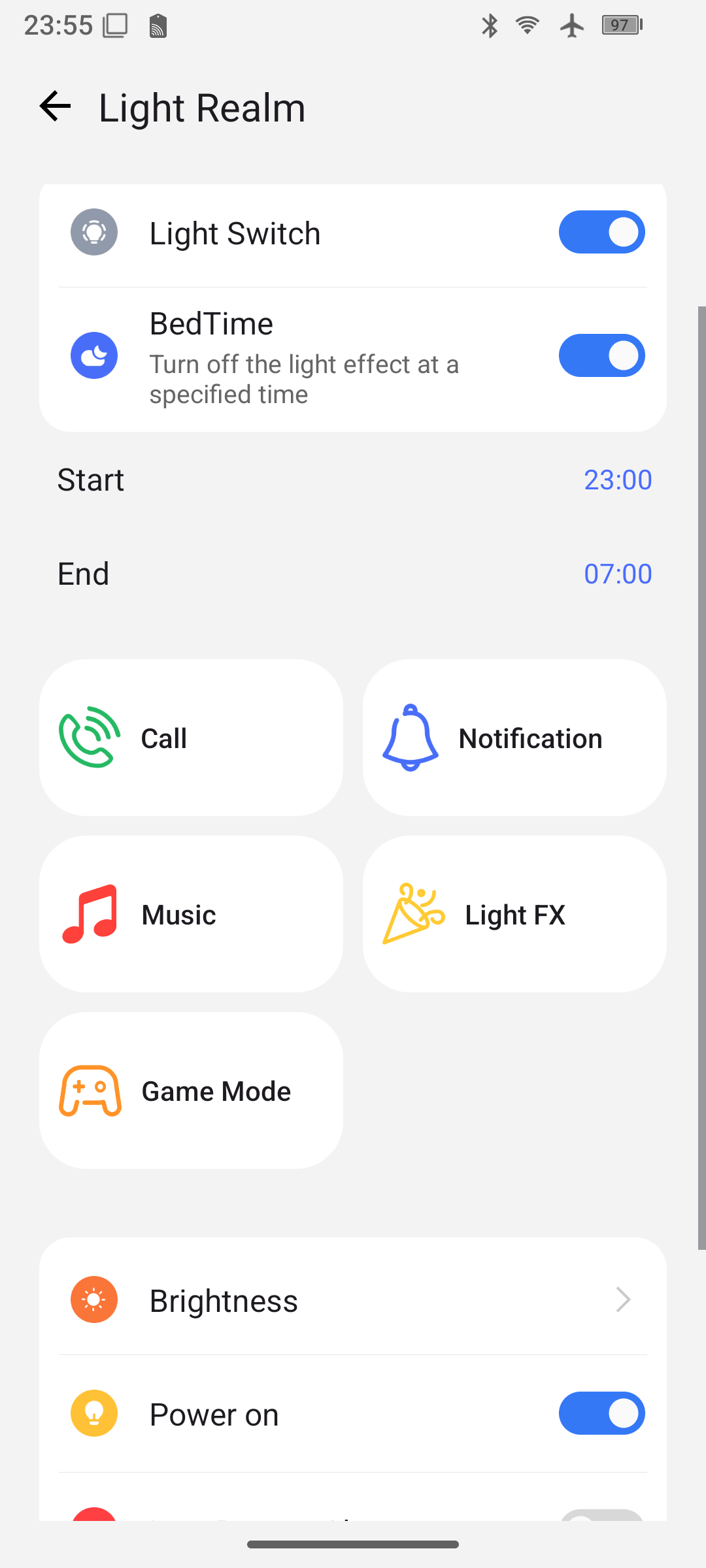 В самом конце нас встречает вот такой вот бар. Можем включить/выключить Wi-Fi, Bluetooth, «не беспокоить», поставить вибрацию или звонки и включить авиарежим. Удобный, прикольный дисплейчик в купе с Y-образным статус-баром смотрится очень технологично и, в целом, более чем функционально.