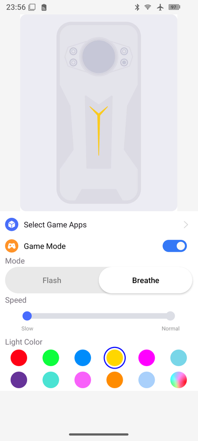 В настройках всё стандартное: можно расширить ОЗУ (12 + 20 Гб) за счёт файла подкачки, настроить умную кнопку, настроить второй экран, настроить параметры и цветовую гамму индикации на задней панели. Ну и, конечно, есть другие привычные всем настройки.