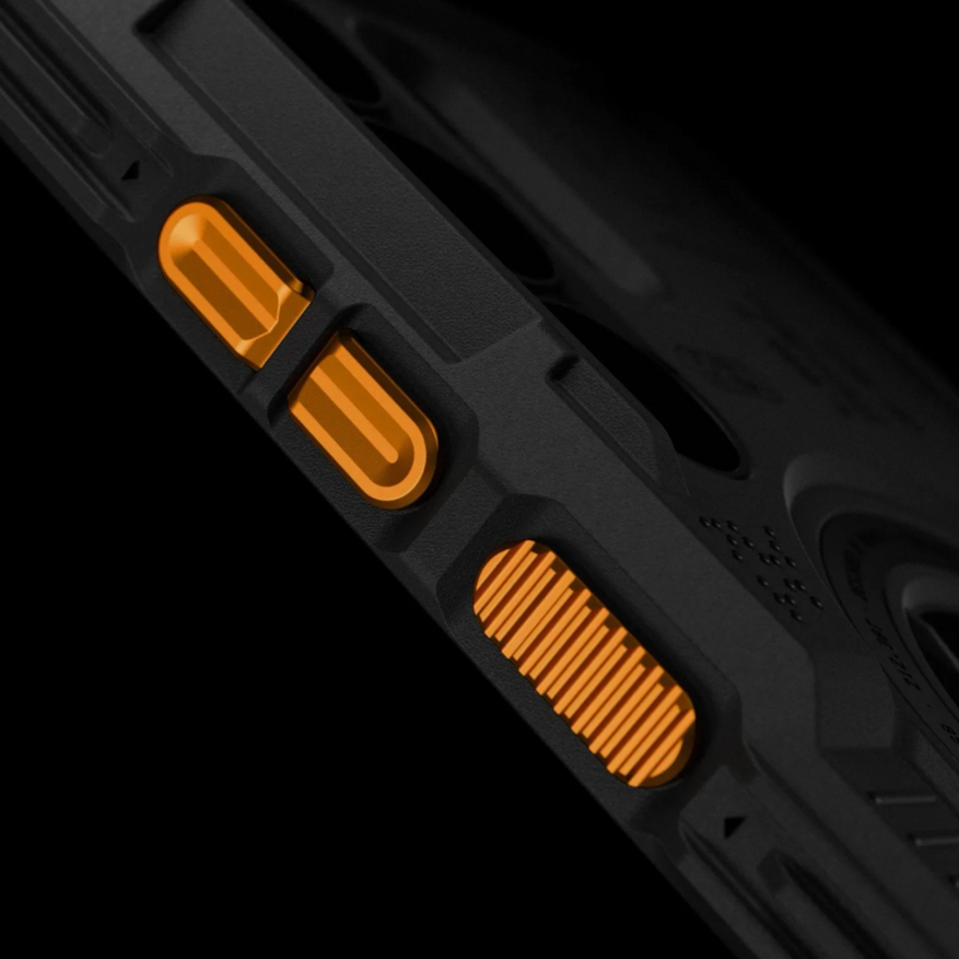 Элементы управления на чехле, включая кнопки громкости и питания, могут устанавливаться в разных цветовых вариантах. Это позволяет пользователю менять внешний вид аксессуара без необходимости покупать новый корпус полностью. Особое внимание уделено магнитной системе. Компания указывает, что магниты усилены, что обеспечивает надежное крепление аксессуаров формата MagSafe. Производитель отмечает, что конструкция рассчитана на совместимость с различными дополнительными модулями, фиксируемыми магнитами.