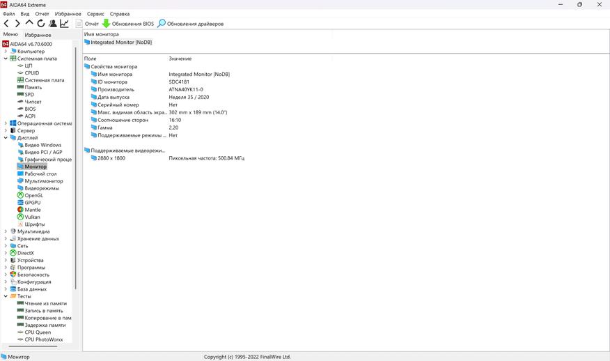 Дисплей подключен к системе через встроенный контроллер и представляет собой OLED-панель Samsung ATNA40YK11-0 с разрешением 2880х1800 пикселей. Экран работает на частоте 90 Гц и поддерживает цветовые профили AdobeRGB и DCI-P3.