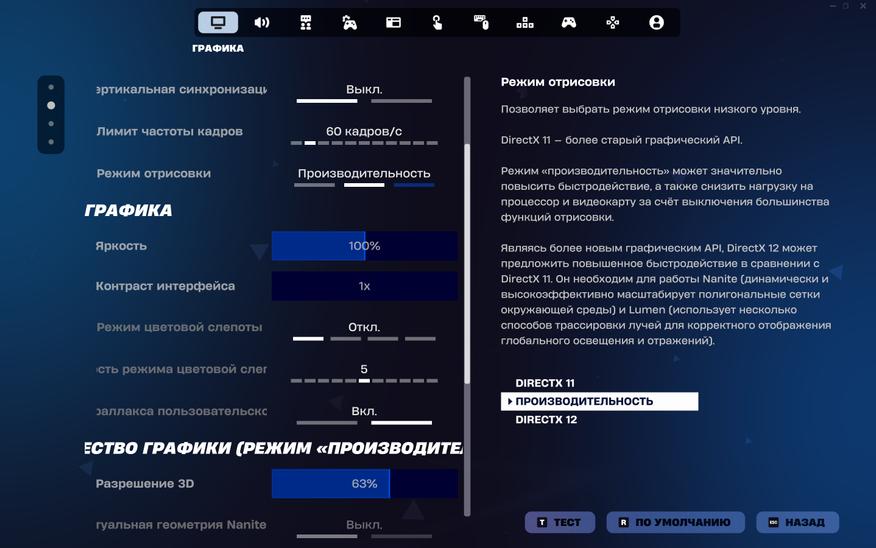 В Fortnite тестирование проходило при среднем уровне графических настроек, включая режим рендеринга в приоритете «производительность» и отключением визуально сложных эффектов. Несмотря на пониженные установки, общая нагрузка на графическую подсистему оставалась ощутимой. Среднее значение FPS варьировалось от 36 до 43 кадров в секунду, при этом игровой процесс не сопровождался видимыми подтормаживаниями (за исключением нескольких первых минут, после запуска игры). Управление было отзывчивым, а изображение — стабильным.