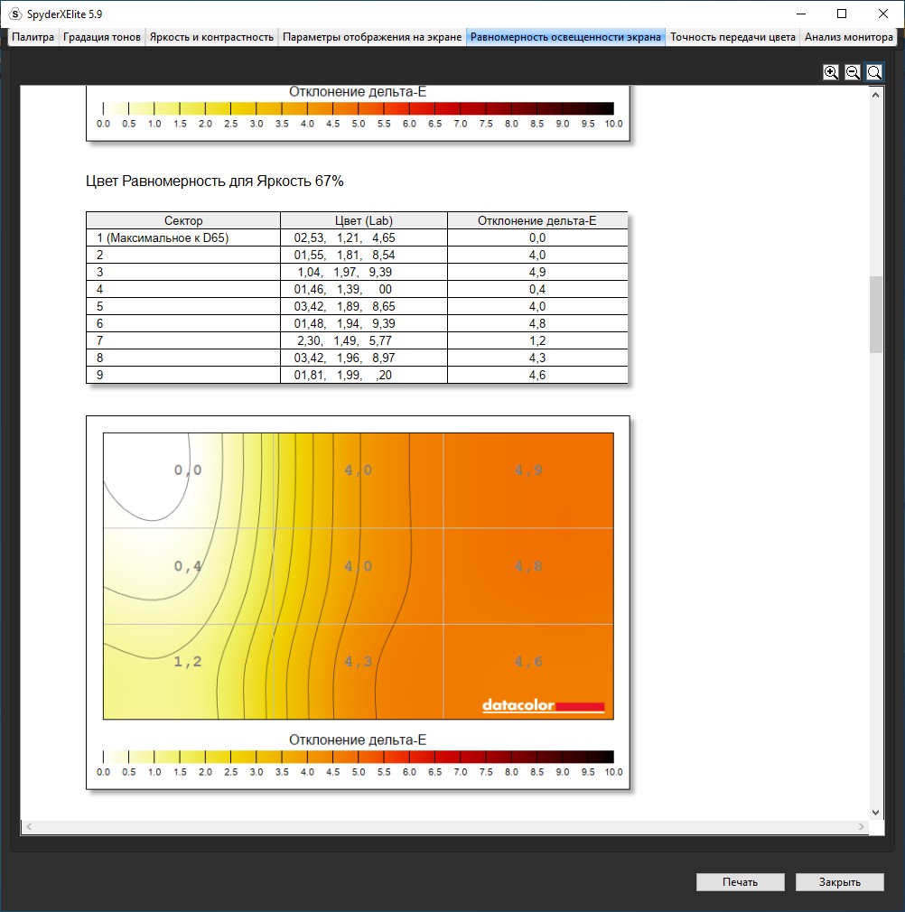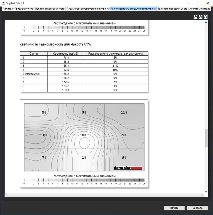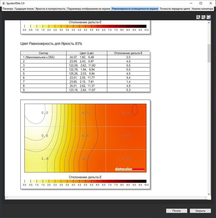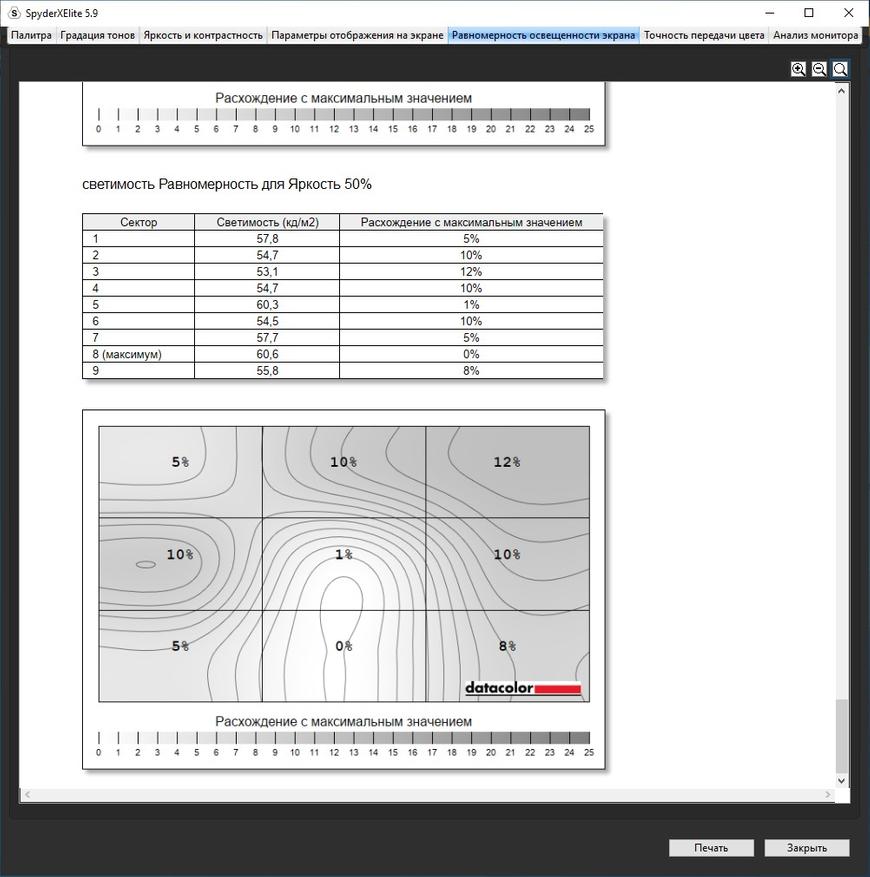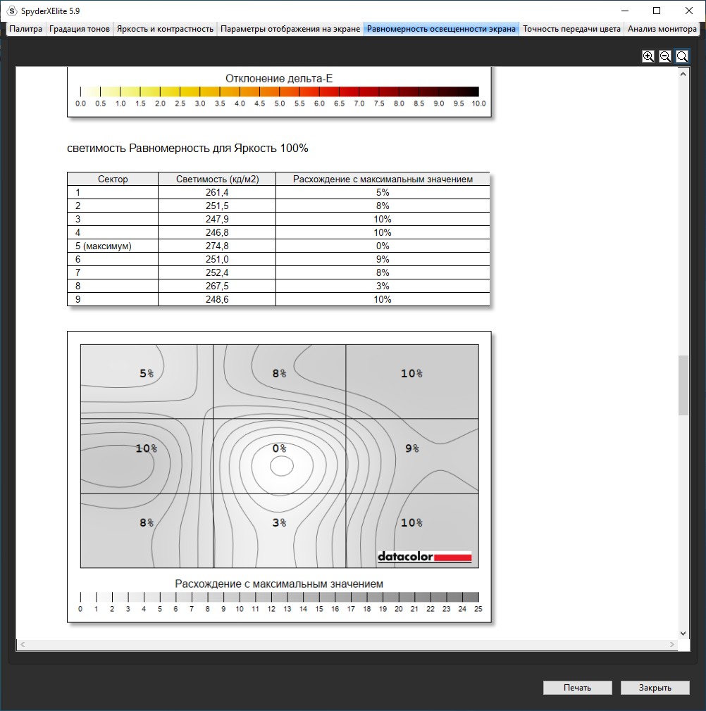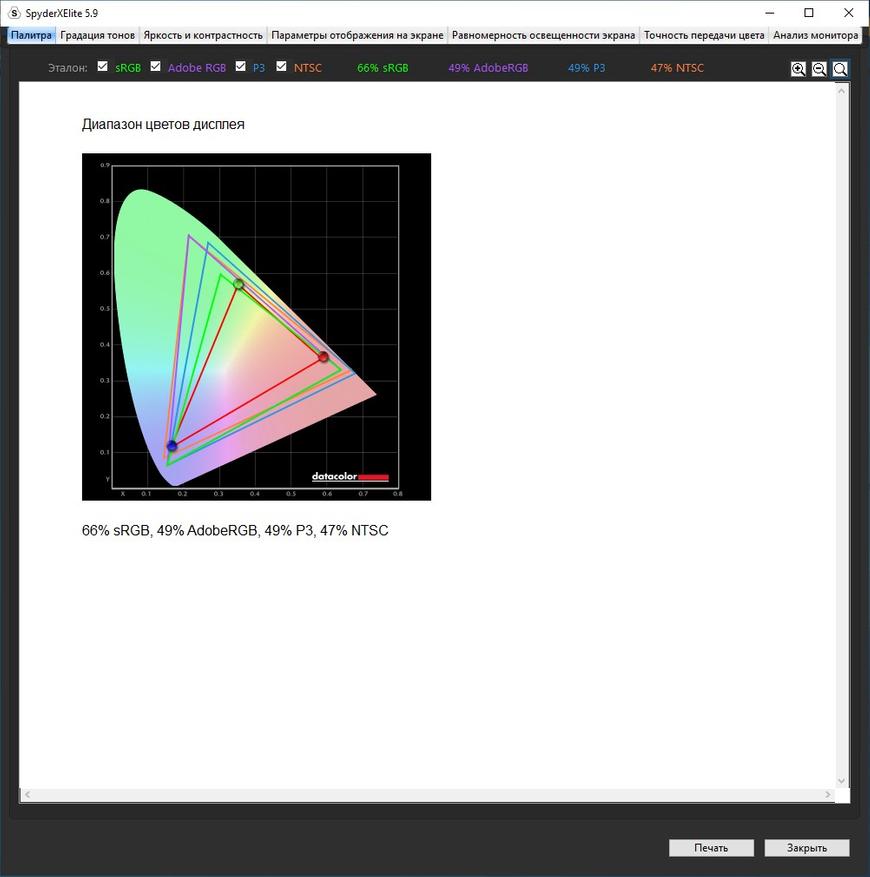 «Паук» выдал показатели вполне типичной матрицы игрового ноутбука с 270 Нит и 66% покрытием sRGB. Однако, если не придираться, для игр этого достаточно. Эффект свечения, который есть почти на всех матрицах IPS, есть, но относительно небольшой, а также есть небольшая область засветки по нижнему краю. Но видно только в кромешной тьме и с пустым экраном, что, я думаю, не самый частый сценарий использования ноутбука. Кому-то не понравится FHD разрешение на 17,3″ матрице, но это уже вопрос комфорта, зрения и вкуса.