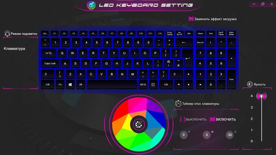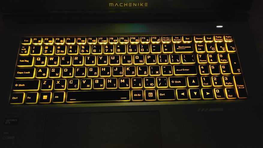 Клавиатура и кликпад нормальные, и не несут никаких проблем во время использования. Более того, подсветка приятная, равномерная и легко настраивается. Есть спокойные тона и возможность уменьшить яркость, как и отключить тайм-аут. В общем, клавиатура очень неплохая и в работе понравилась.