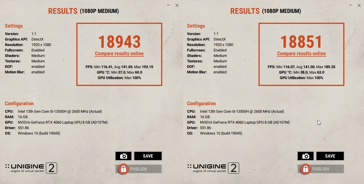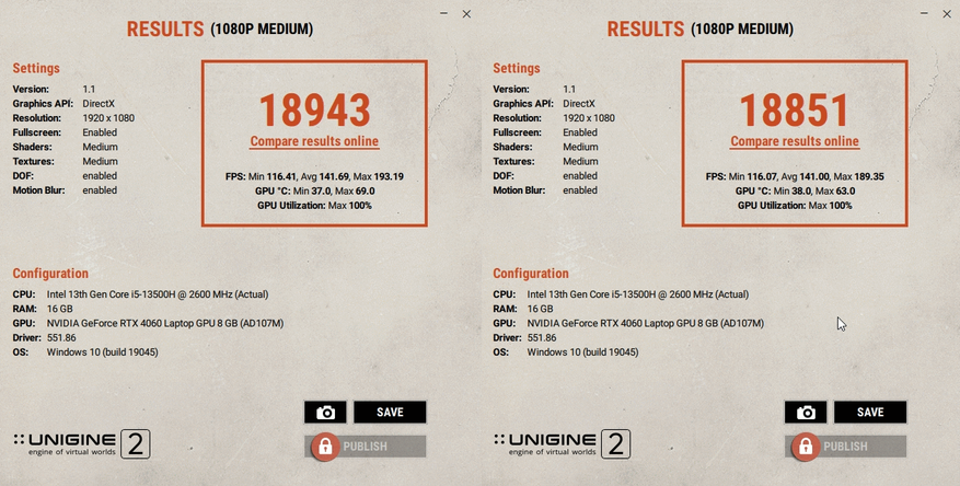 Нагрев и шум полностью повторяют другую модель, т.к. вероятно, настройки, охлаждение и другие моменты идентичны, поэтому приведу результаты и буду переходить к интересному.