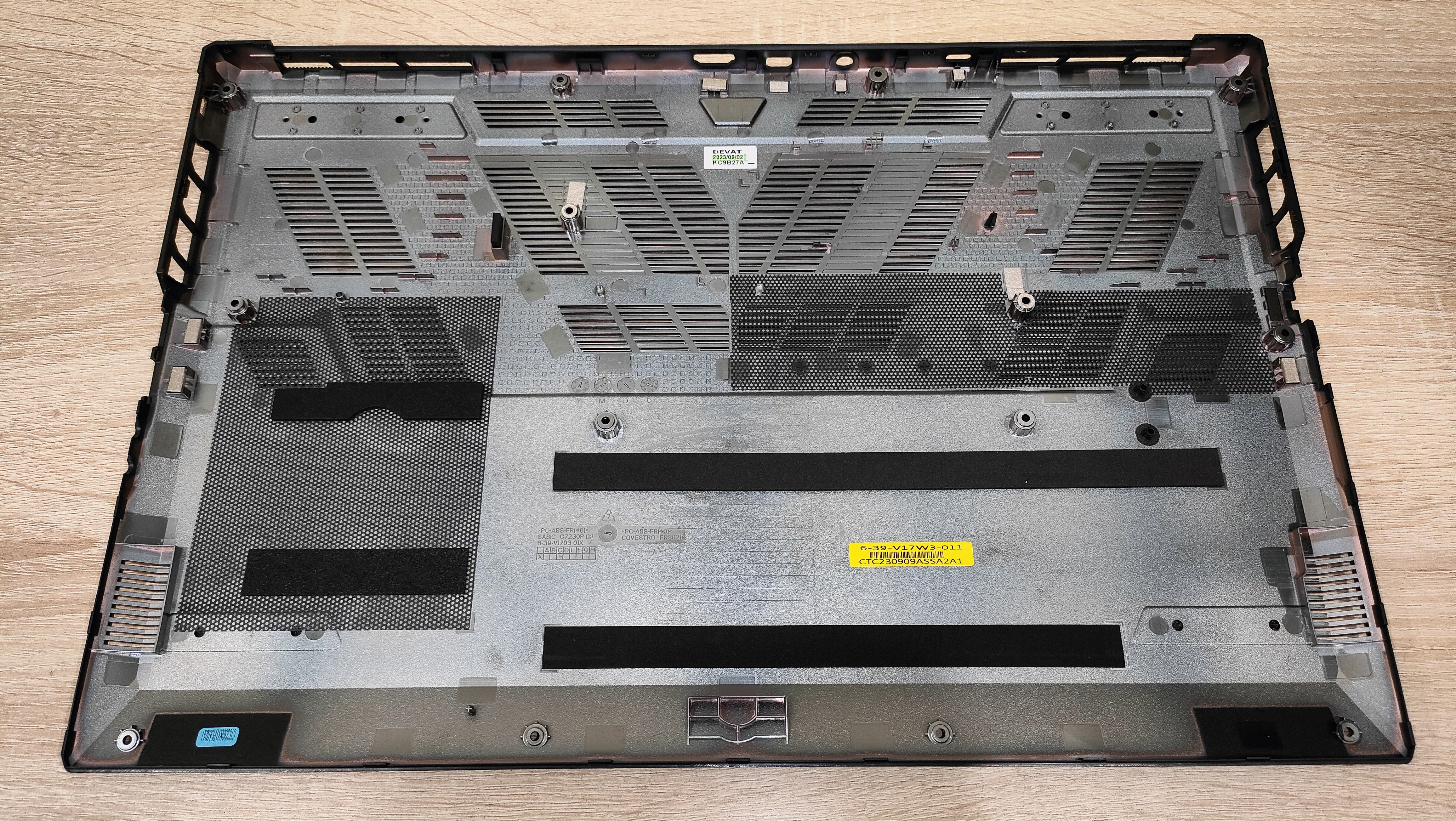 Нижняя часть у ноутбука смотрится ближе к классике, чем у L15, у которого много ломаных линий, углов и прочей атрибутики игровых ноутбуков. Кроме того, количество вентиляционных отверстий явно больше чем у L15, но дефицита притока воздуха не было и не будет для активной системы охлаждения. Наклейки, пломба, винты и динамики на месте и никуда не делись.