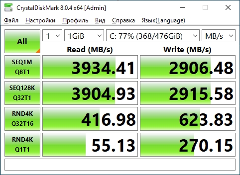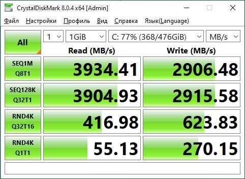 Накопитель NVME работающий на PCIe 4 x4, если честно, не вижу особого резона гнаться за более современными, основанными на PCIe 5, я бы сказал хватит и PCIe 3. Накопитель YMTC PC300 объемом 512 ГБ, недалеко ушел от стандарта PCIe 3, но в устойчивой записи показывает больше, чем в принципе можно выжать из SATA интерфейса.