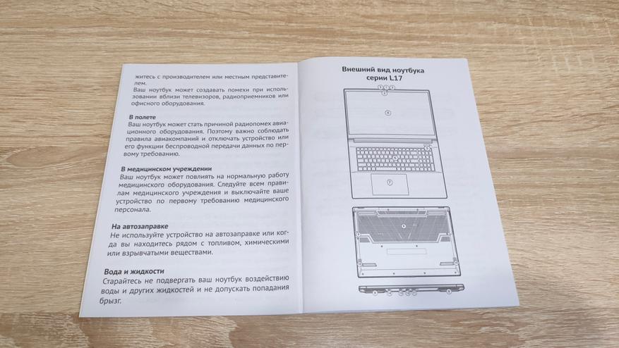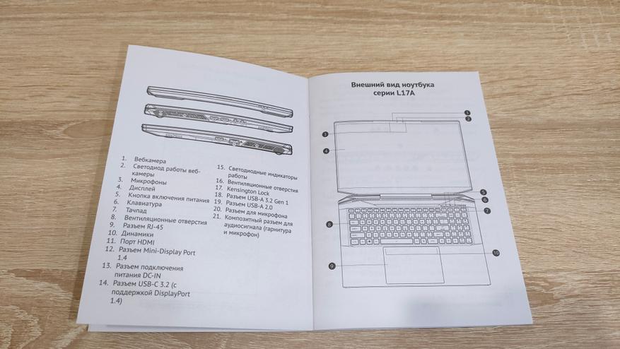 Адаптер питания такой же, как и был в модели L15, нет смысла менять его, если мощность соответствует, к тому же, блоки питания обычно имеют небольшой запас с превышением максимальной мощности, но непродолжительное время. Тем более, вендор, который изготовил данный блок известный, а его продукция встречается в комплекте со многими устройствами A/B брендов. Руководство пользователя кратко, но емко рассказывает об устройстве, а точнее, о серии устройств, т.к. оно общее для целой линейки ноутбуков.