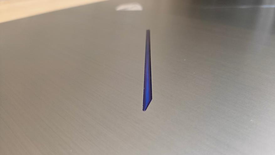 Корпус пластиковый, кроме верхней крышки, закрывающей матрицу, она изготовлена из алюминия или какого-то сплава на его основе. У меня нет трепета перед металлическими корпусами, даже высокоуровневые модели могут щипать током, а если «машинка» производительная, так еще и поддон горячий, а такой неприятно держать на руке или коленях. Дизайн это вкусовщина, а как известно, на вкус все фломастеры разные, кому-то он будет приятен, кому-то нет. Внешне ноутбук неплох, игровую ориентированность выдает пара крыльев или, скорее, ноздрей, а также логотип. Эти элементы, забегая вперед, с подсветкой, а как все знают, если есть подсветка, значит устройство игровое. Если бы устройству уменьшить чуть толщину, то вполне можно увидеть в нем бизнес модель. Но опять же, вкусовщина, каждый пусть решает для себя, все равно все смотрят в экран и иногда на клавиатуру.