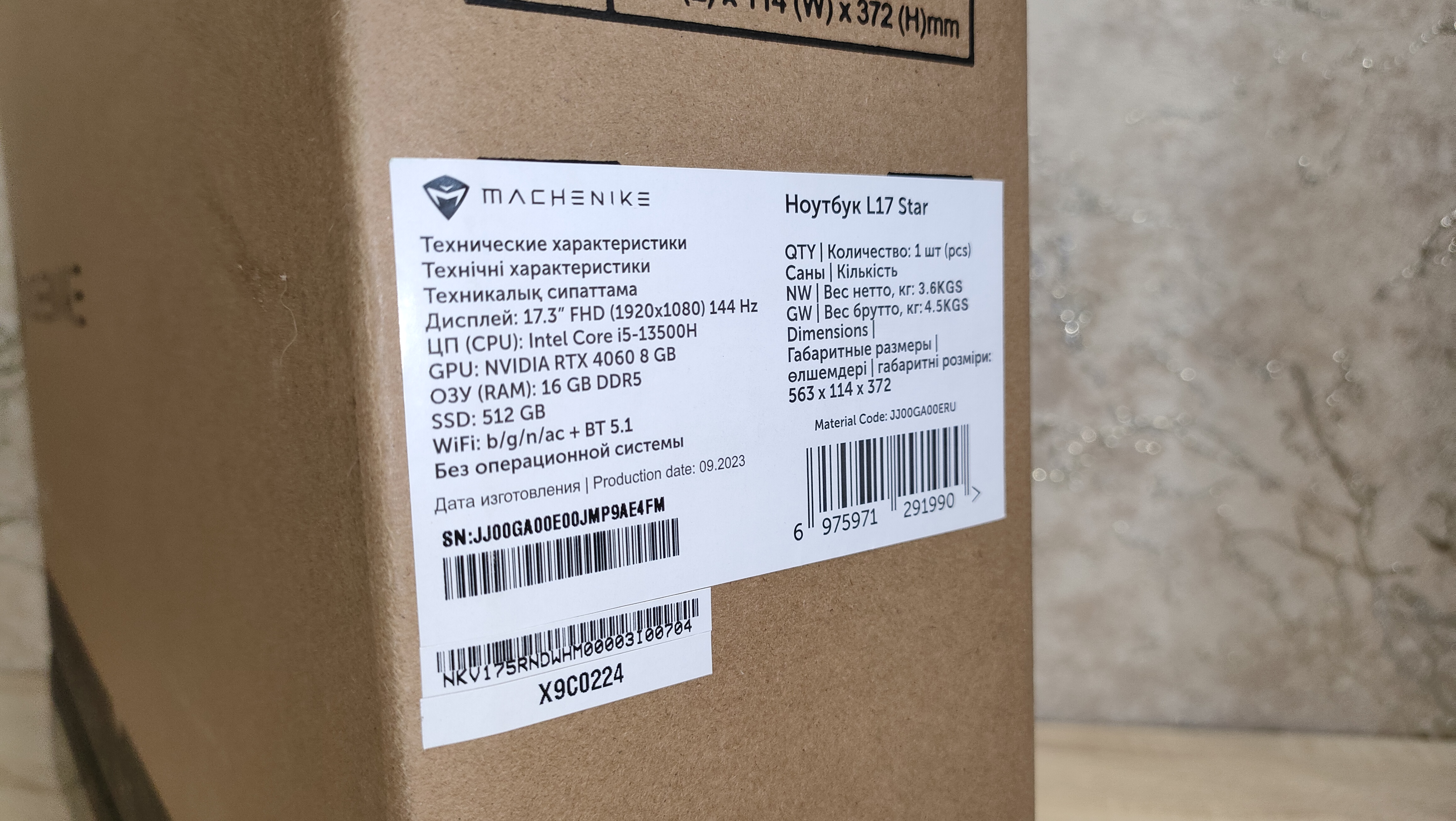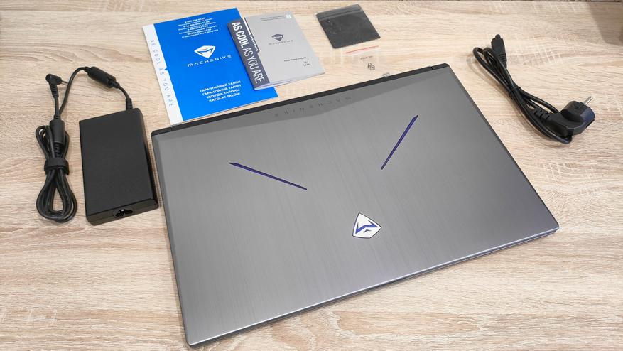 Информации на них немного, лишь наклейка на одной из них рассказывает о том, что находится внутри, в том плане, какая комплектация у ноутбука. Комплект поставки следующий: ноутбук Machenike L17 Star, сетевое зарядное устройство, гарантийный талон, руководство пользователя, салфетка, а также винты для дополнительного накопителя, которые намекают на то, что можно установить 2,5″ вариант.