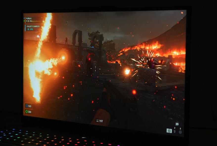 В играх изображение выглядит отлично. Особенно, если это динамичная и яркая игра, в которой достигается высокий уровень производительности. Благо дело – экран FullHD, что и для мобильной версии RTX 3080 Ti является лёгкой задачей в большинстве многопользовательских (и не только) игр. Взгляд сбоку несколько меняет изображение в плане яркости и цветопередачи, но изменения назвать критичными нельзя.
