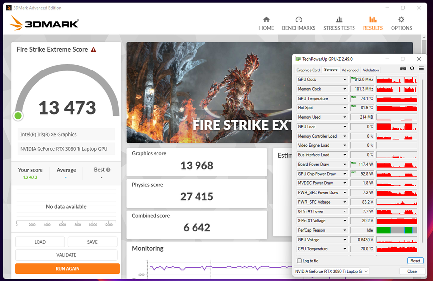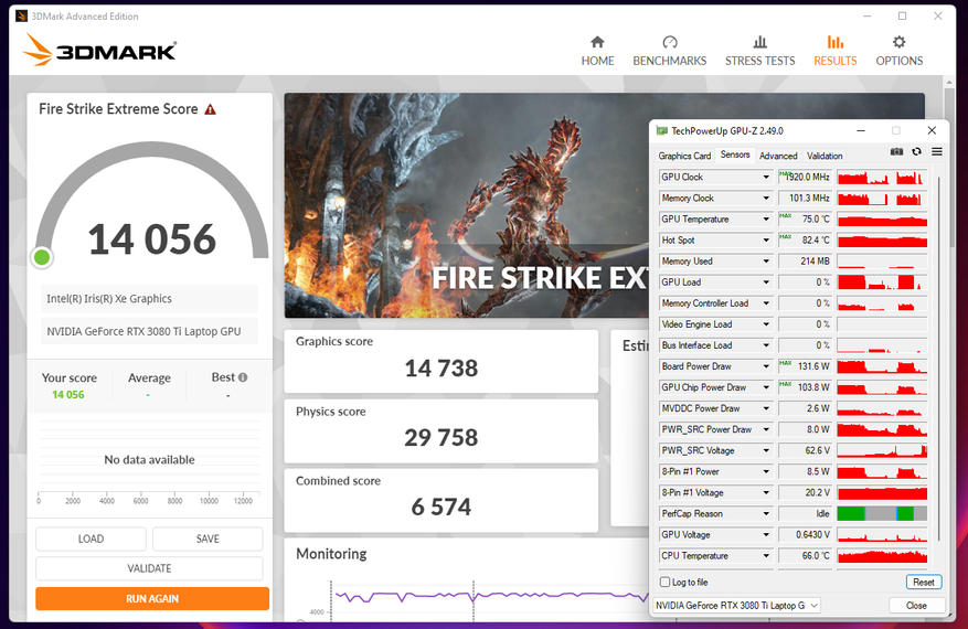 Производительность ноутбука в играх соответствует уровню ПК с полноценными видеокартами уровня между RTX 3060 Ti и RTX 3070, которые обладают куда большим энергопотреблением.