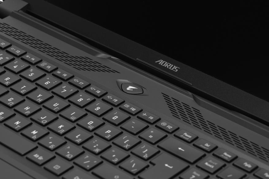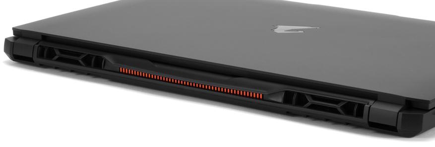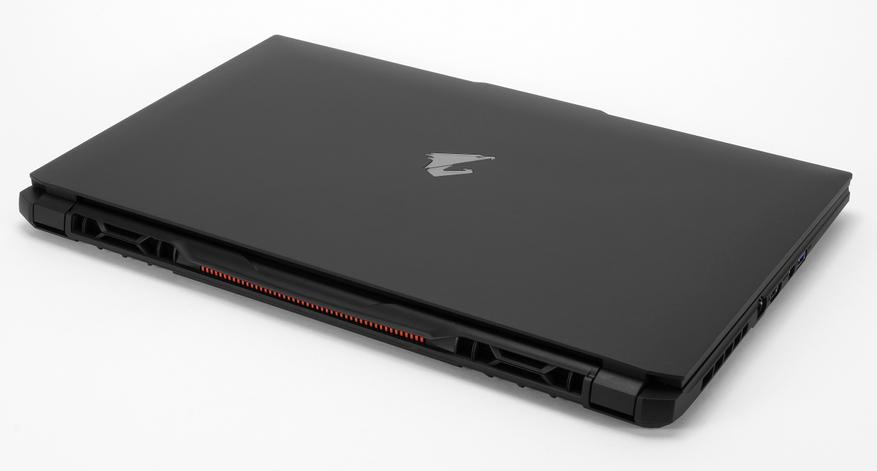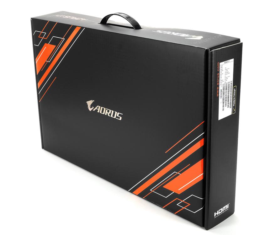Даже с учётом того, что продукция AORUS преподносится как игровая, ноутбук выглядит достаточно строго. Визуально игровым его делает логотип бренда, оранжевая вставка позади и RGB клавиатура. Для большего понимания его предназначения потребуется включить ноутбук, но к этому стоит вернуться несколько позже. Весит изделие примерно 2.7 кг, а его габариты составляют 39.8х25.4x2.4-2.7 см.