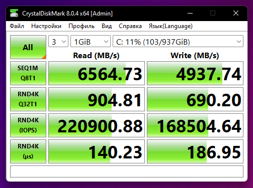 Установленный твердотельный накопитель демонстрирует достойную скорость, особенно если учитывать, что это ноутбук.