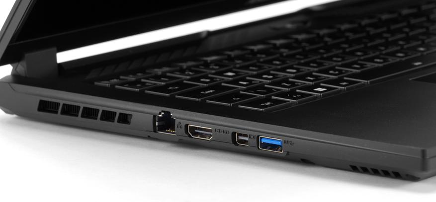 Что касается возможностей подключения, то проводные интерфейсы представлены таким набором. Слева – один USB порт (5 Гбит/с), сетевой порт RJ-45 со скоростью передачи данных до 2.5 Гбит/с, HDMI выход стандарта 2.1 и mini Display Port выход стандарта 1.4.
