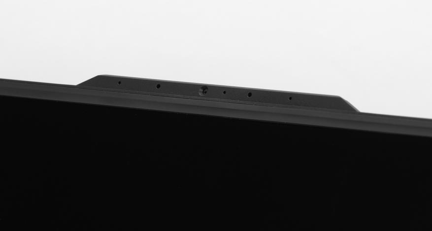Центральная часть верхней рамки увеличена, но не является выступом для удобного открытия крышки – в этой части рамки встроена стандартная камера, которая дополнена ИК-сенсорами для работы функции Windows Hello – распознавания лица. Здесь же расположена пара микрофонов.