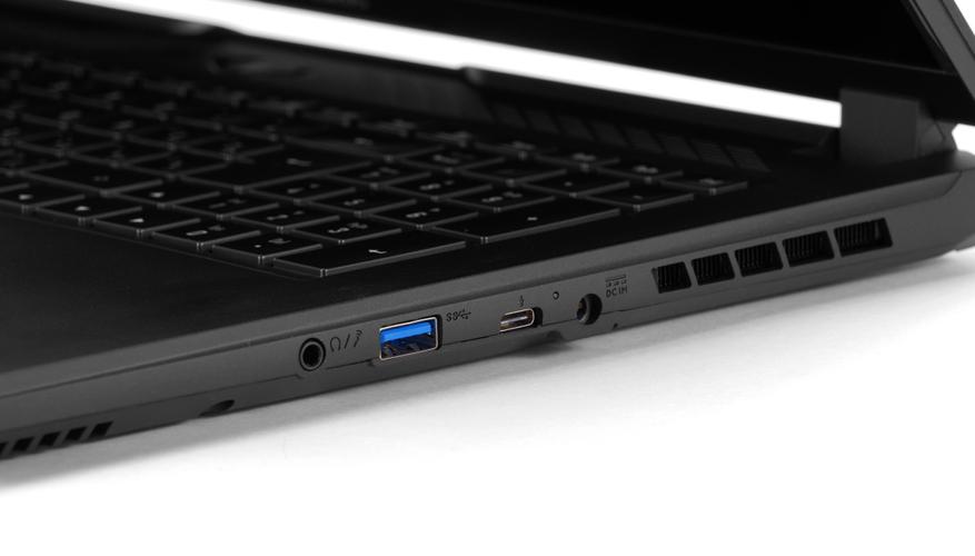 Справа – ещё один USB порт (5 Гбит/с), Thunderbolt 4 порт (формат USB Type-C), аудио разъём формата 3.5 мм и разъём для подключения комплектного блока питания. На обеих боковых сторонах, кроме указанных интерфейсов, размещены отверстия для вывода горячего воздуха из системы охлаждения.