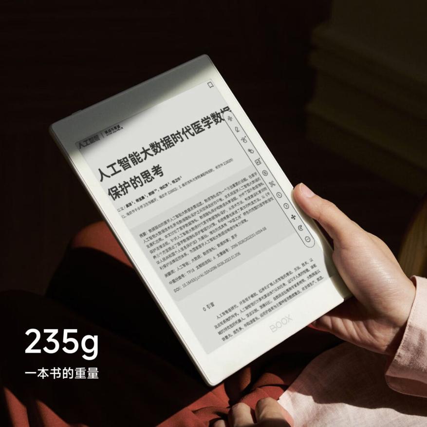 Модель оснащена 7,8-дюймовым дисплеем E-ink Carta 1300 с разрешением 300 ppi, что обеспечивает высокую чёткость текста и изображений. Габариты корпуса соответствуют формату A5, а вес составляет 235 граммов.
