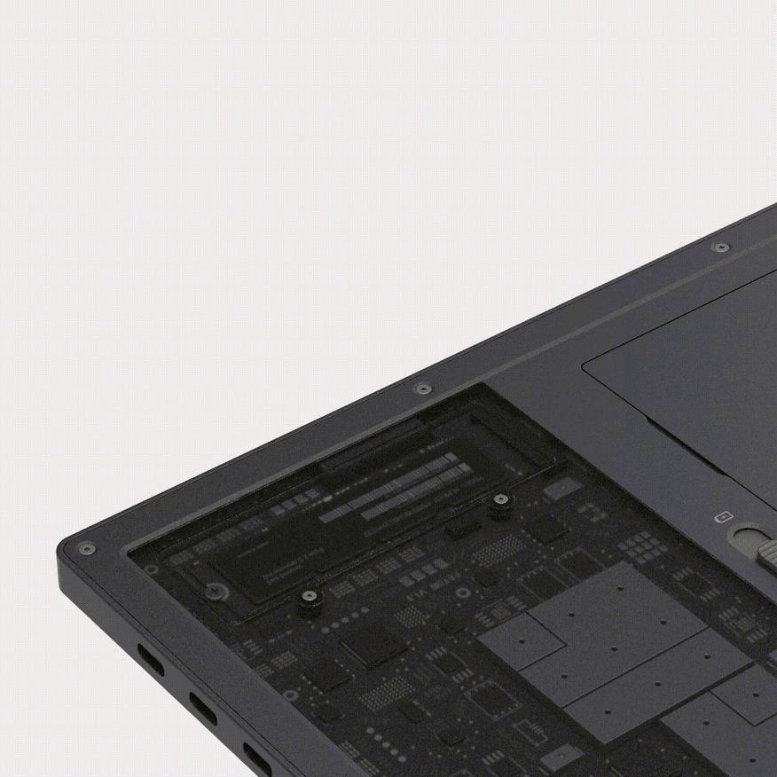 Конструкция планшета предусматривает быструю разборку с помощью отвертки для замены аккумулятора и других элементов. Устройство получило слот M2, который поддерживает установку твердотельных накопителей объемом до 1 ТБ, сотовых модемов для связи 5G или карт-ускорителей искусственного интеллекта.